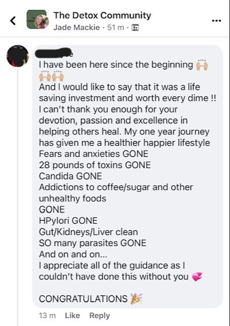 Detox Academy Plus is for people who are done trying to heal alone, who want intimate group coaching in a private channel, with direct access to Jade over 12 months, so they never have to guess their next step in the process again.