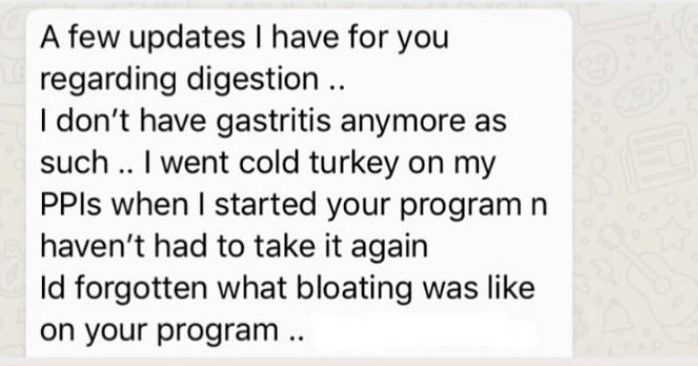 "My digestion has been better in these first 9 weeks than it has my entire life and that is not an exaggeration! No pain, no bloating, no reflux, no nausea, nothing. It's unbelievable!"Â